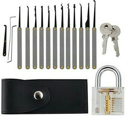 Locksmith Hand Tools Lock Pick Set Transparent Visible Cutaway Practice Padlock With Broken Key Removing Hooks 15pcs set